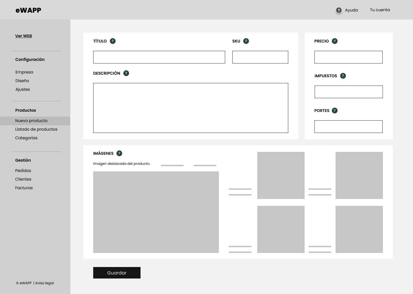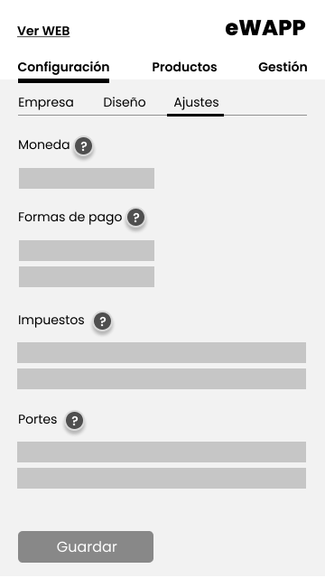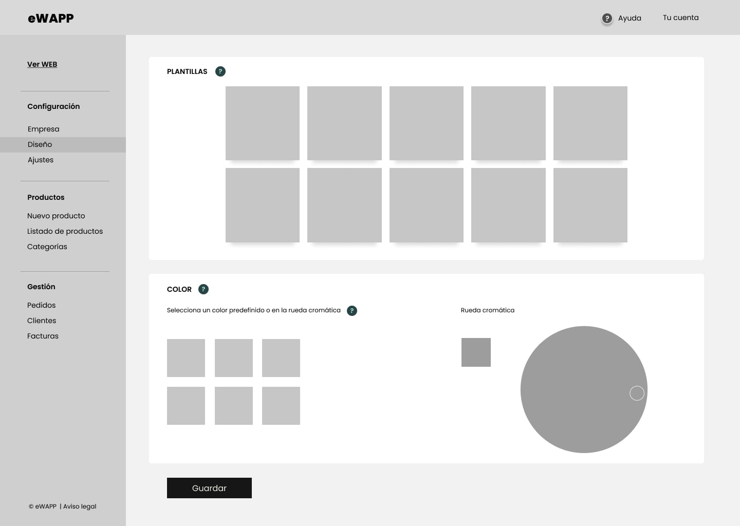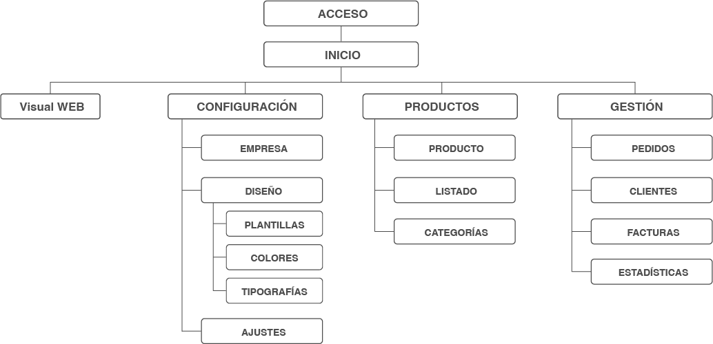 Para poder construir el ecommerce, el usuario debe configurar la aplicación desde un panel de control. Los pasos que debe seguir deben estar claros en la estructura informacional. Para ello organicé todo por orden de importancia.